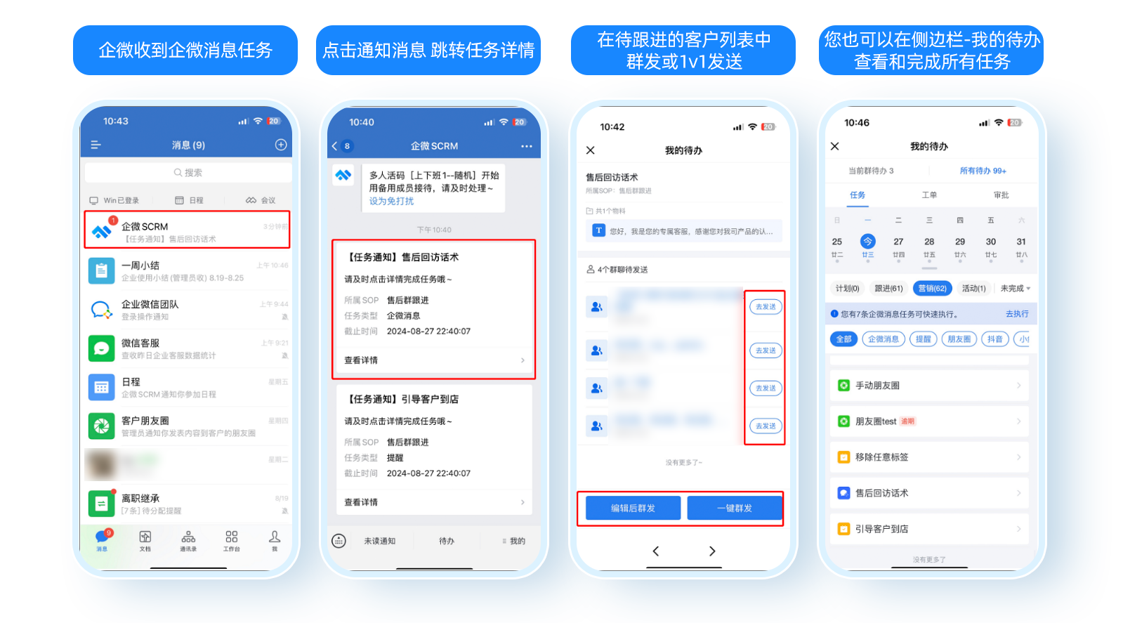 步骤目的:减轻销售的工作负担,避免因群发复杂操作、繁琐步骤影响销售,最大程度保证触达效率。