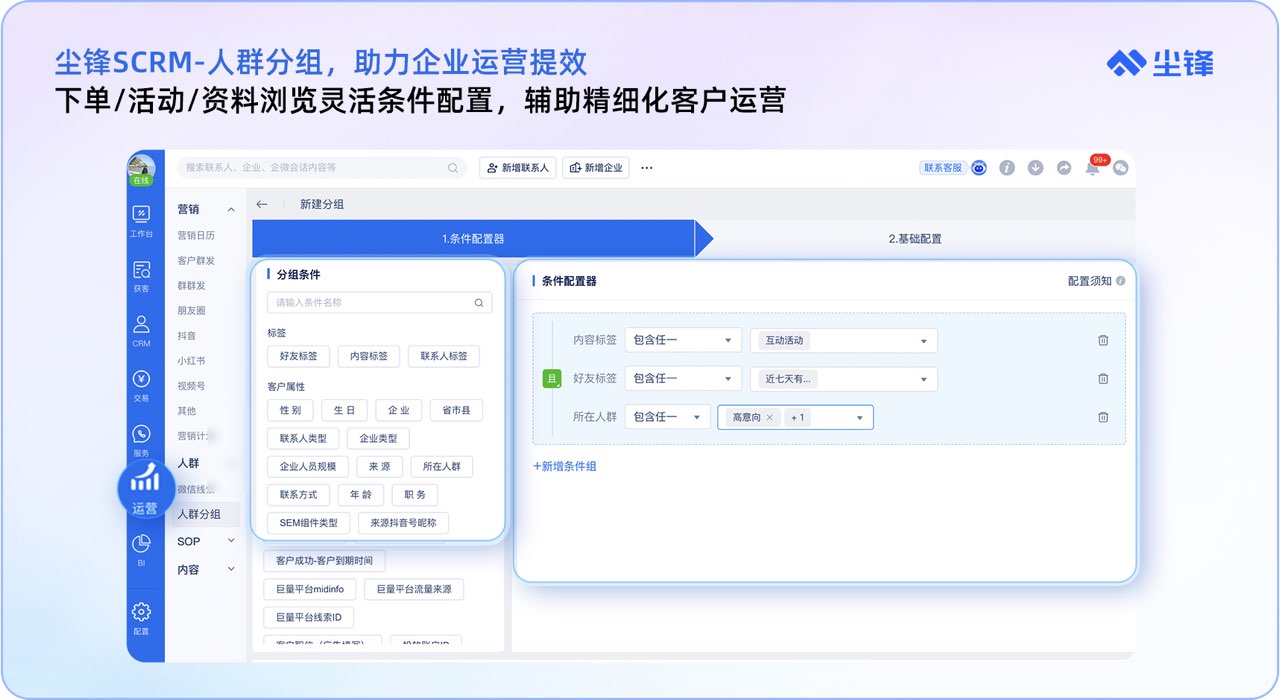 企业可以通过尘锋SCRM人群分组,基于客户标签精细化圈定促活任务目标,为客户提供有价值、能重新唤起其兴趣的个性化内容,比如提供最新行业信息解读、专业报告、优惠活动等等内容,或针对其过往兴趣点发力,降低其再次互动决策的门槛,当客户产生了浏览行为,配合提醒工具,确保销售能够第一时间介入跟进,帮助企业挖掘私域用户的潜在价值。