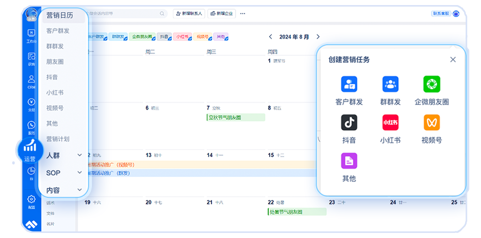 比如,为销售提供专业支持,建立内容素材生产体系,比如由管理层分享行业洞察短评、市场部提供脚本、拍摄辅助及图文设计支持,通过尘锋营销日历等工具进行快速分发,帮助销售减轻和降低内容生产门槛,让销售只专注于擅长的互动与表达。