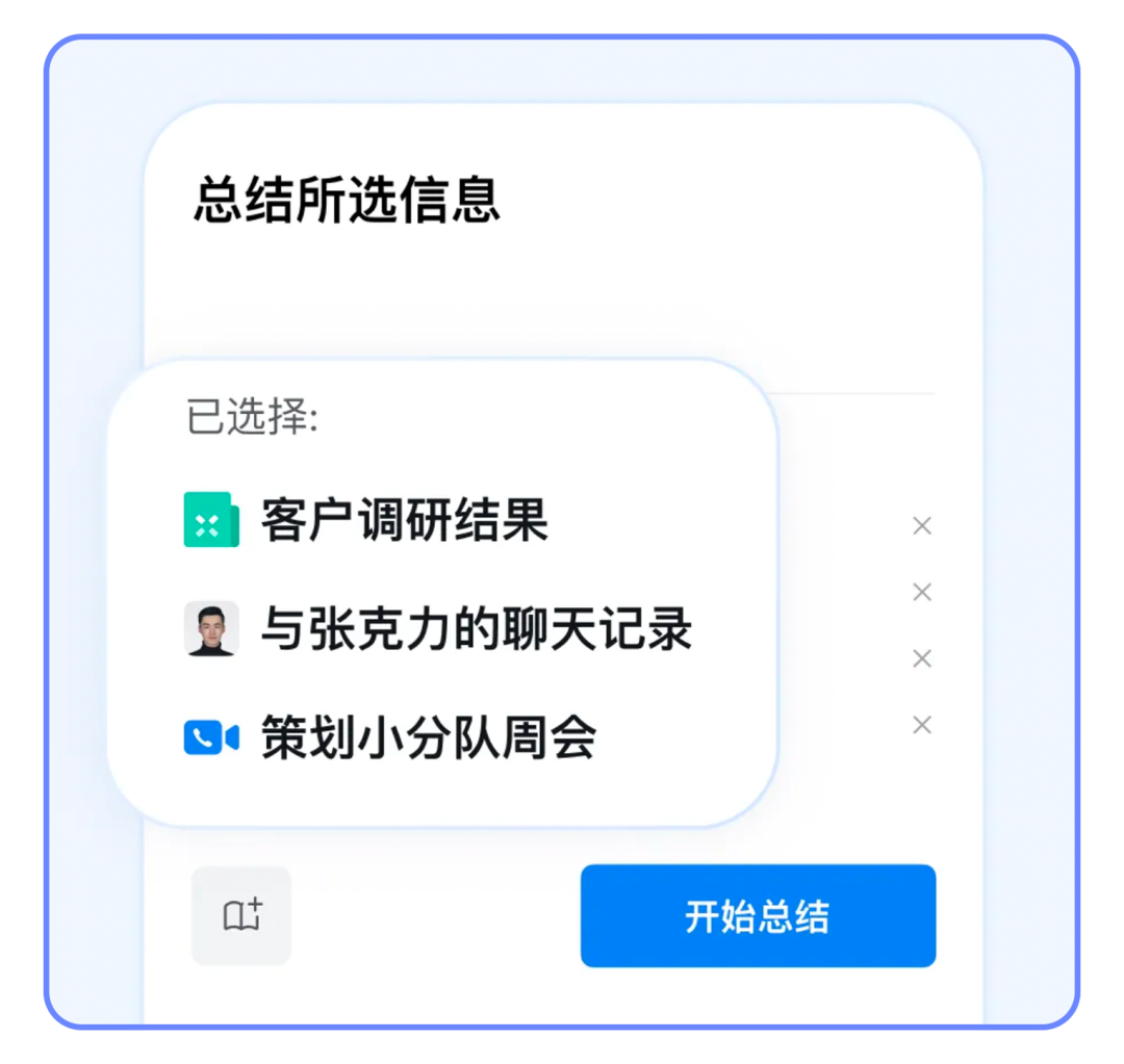 同时,智能总结和智能搜索也支持覆盖更多类型的信息源了,不论是语音消息、工作日程还是应用消息,都可以被智能总结和搜索覆盖,更完整的呈现业务情况,辅助企业轻松办公。