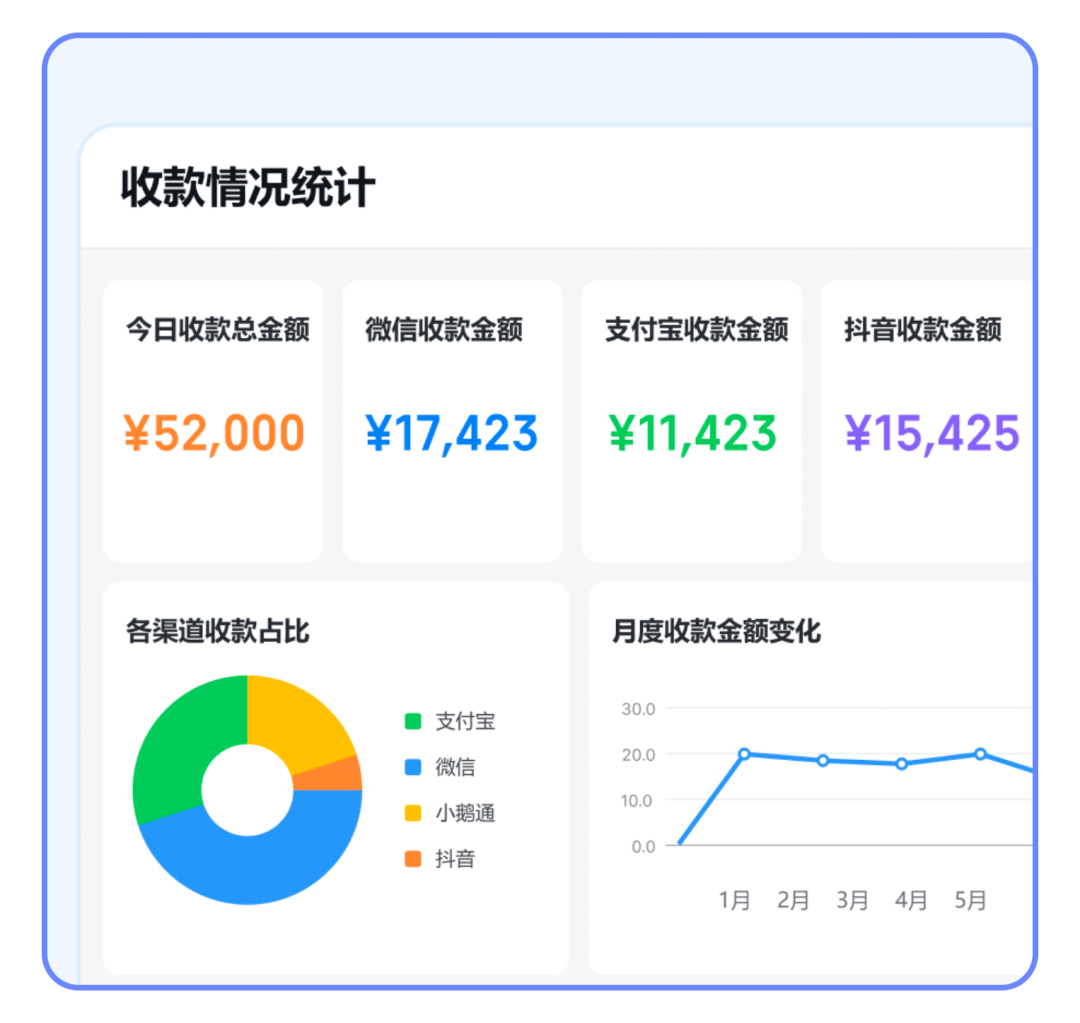 在打卡、审批、对外收款等高频业务场景中,数据可直接同步至智能表格。管理者可通过数据仪表盘,实时掌握考勤异常、审批进度及收款情况,实现对业务全局的直观把控。