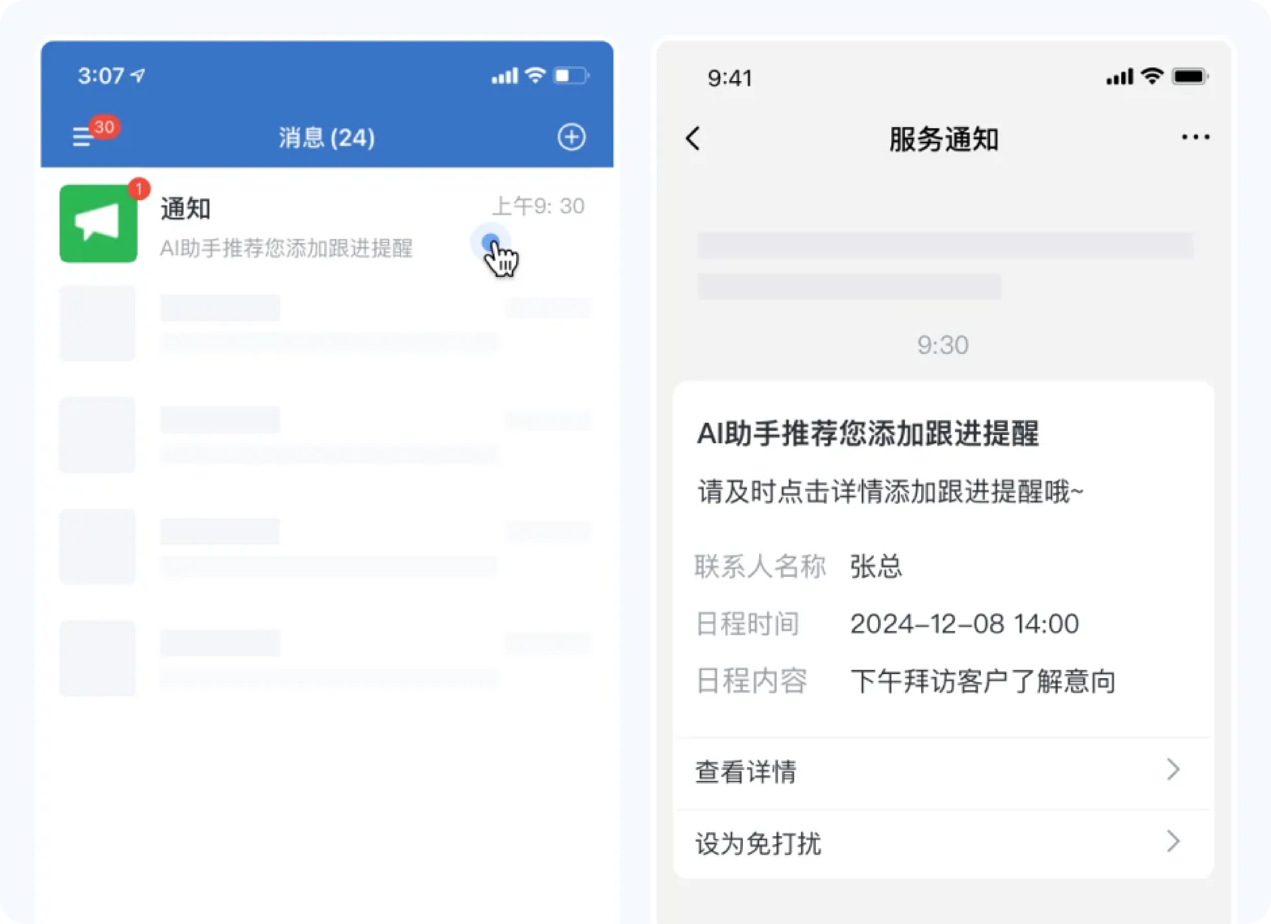 现在,在尘锋SCRM+AI的帮助下,会在约定好的跟进节点提醒销售跟进,也会参考企业的最佳转化实践,帮销售找出待跟进客户,辅助销售及时跟进,避免错失潜在商机。